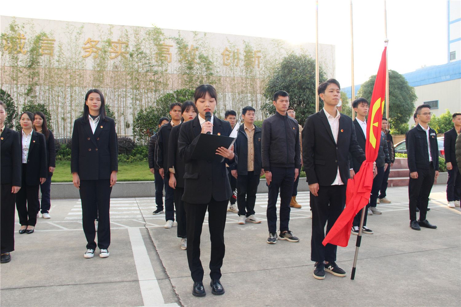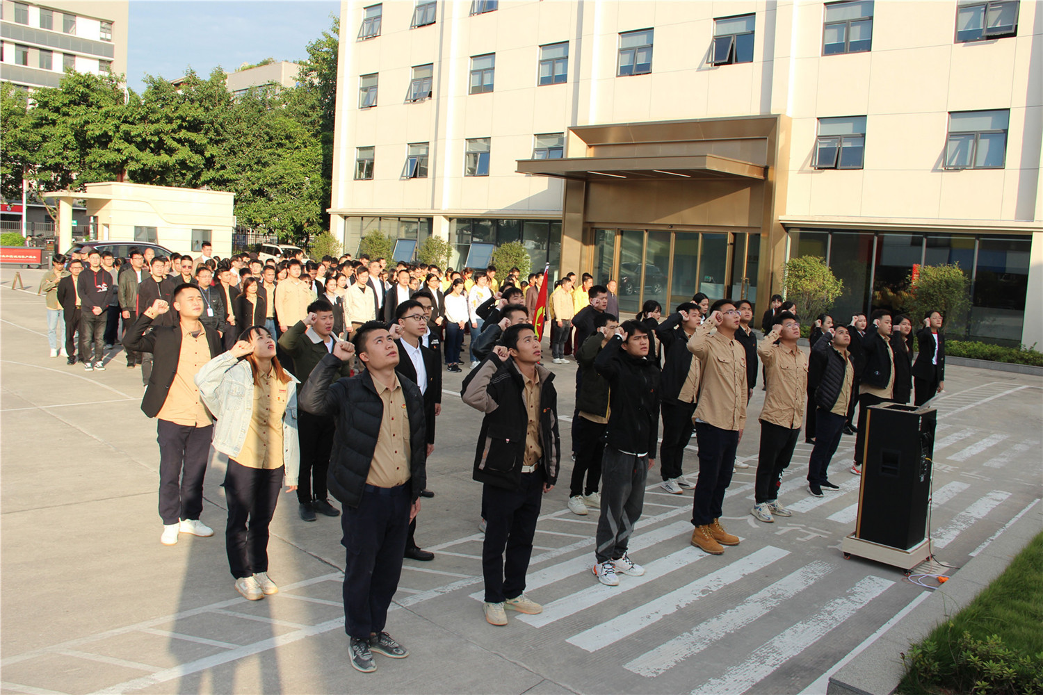 ▲组织企业职工日常开展升国旗、唱红歌等爱国主义活动