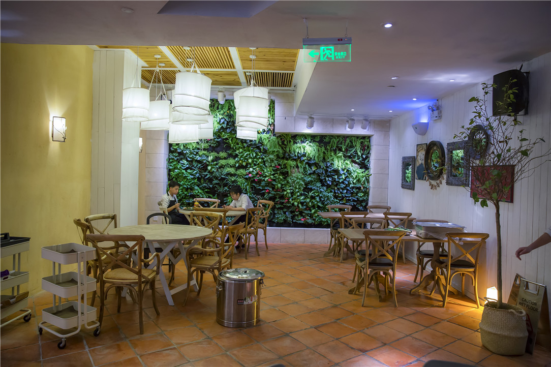 用餐区的装修保持了乌玛一贯简洁优雅的调性,白色墙面和木质桌椅,以及墙上别致的小摆件,在柔和的黄色灯光下,有种令人放松的亲切感。随意挑个心仪的位子坐下,点上一份西餐,没有外部世界的叨扰,这里足以让你填饱肚子,慰藉心灵,达到身心的双重统一。