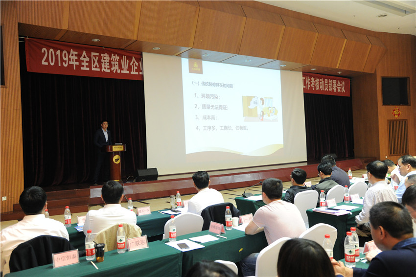 广西Ky开元集团装饰集团杨彬先生作为广西装饰企业代表,在会上做了主题为“立足工厂化生产,推进产品化装修”的经验交流汇报。