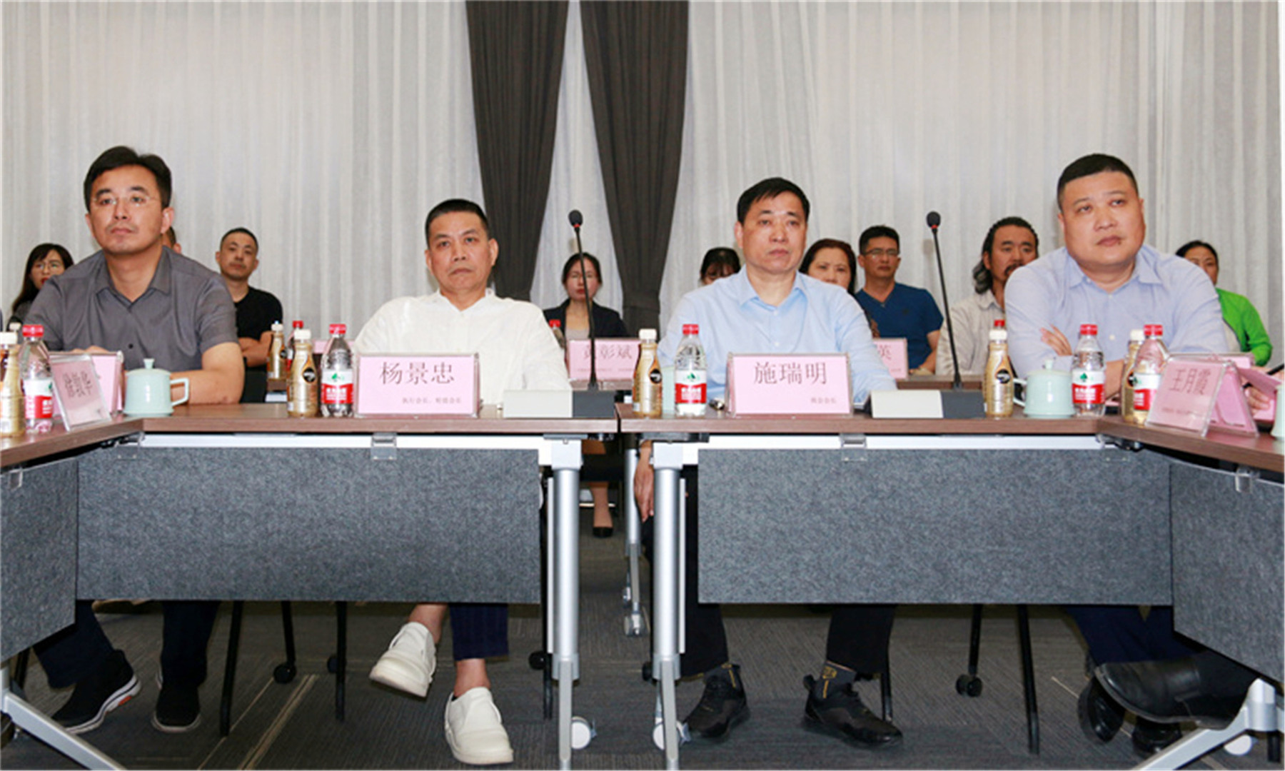 ▲从左至右:商会执行会长杨勤伟、杨景忠,商会会长施瑞明、商会党支部书记张国富出席交流分享会