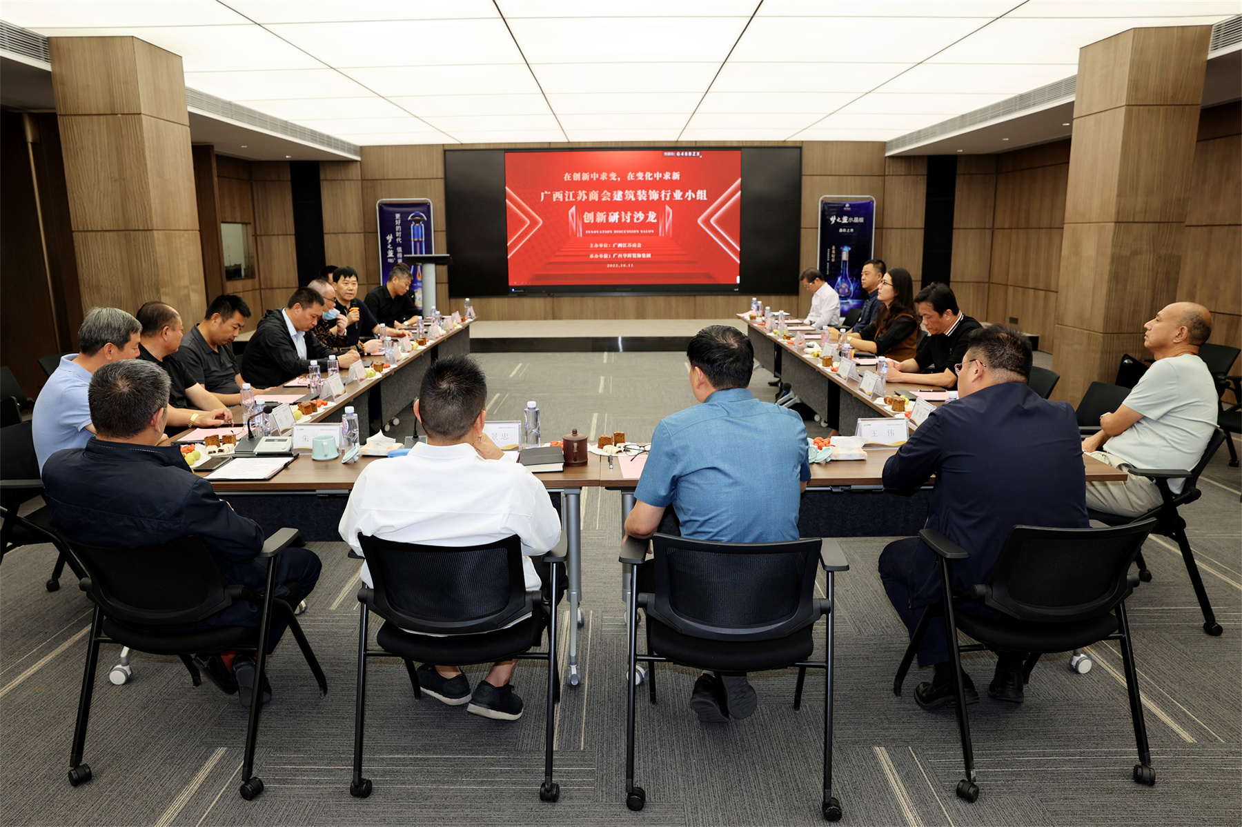 2022年10月11日,广西江苏商会建筑装饰行业小组创新沙龙研讨会在Ky开元集团举办。围绕受新冠疫情严重冲击影响的新形势下,建筑装饰行业的发展结构特点、市场格局、竞争趋势、行业企业“痛点”四个维度对产业现状进行交流、研讨。会长施瑞明、执行会长杨景忠、秘书长朱建平,商会党支部书记、常务副会长王伟,常务副会长徐敦华、叶东,副会长许荣华、贾卫平、陈忠和、王晓云,副会长赵玉清代表,理事杨卫彬、马红芳、张军,理事蔡青松代表以及相关会员等20多人参加。会议由秘书长朱建平主持。