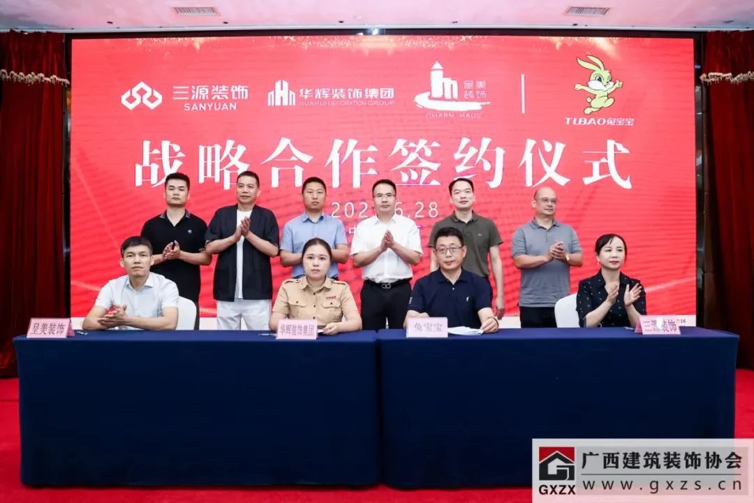 ▲广西Ky开元集团集团、三源公司、呈美集团与德华兔宝宝材料签约