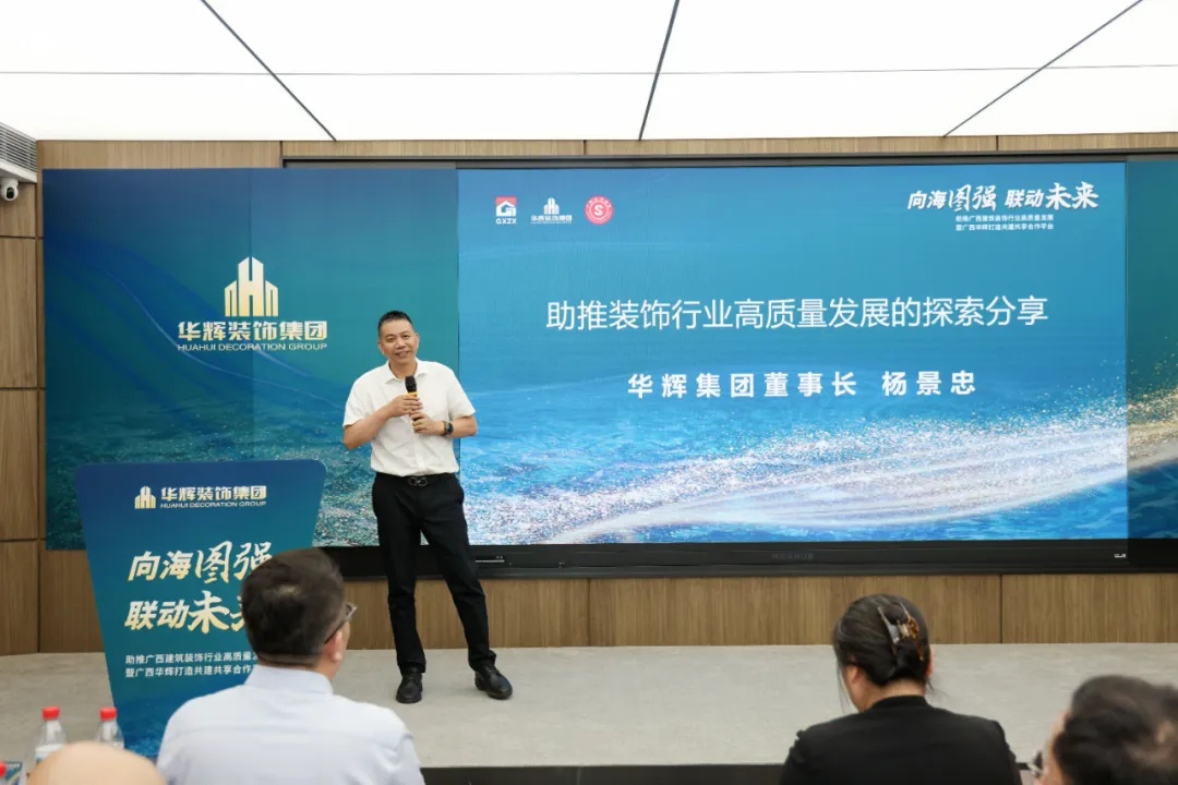 Ky开元集团装饰集团董事长杨景忠以深邃的行业洞察和丰富的实践经验,向与会嘉宾分享了Ky开元集团在助推装饰行业高质量发展方面的积极探索。杨景忠指出,装饰行业正处在一个关键的创新升级期,随着人们生活水平的提高,人们对品质、美学的要求越来越高,装饰行业也会不断有新的需求市场。未来装企的三条路是向海图强——出海、搭建平台、依托平台,Ky开元集团致力于打造广西装饰行业的“共建共享合作平台”,利用Ky开元集团25年的优势和经验,赋能行业,与行业企业携手共进,共同应对市场挑战,实现行业的可持续发展。