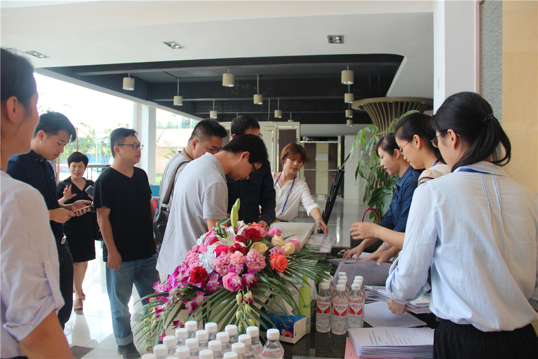 10月21日下午三点半,广西建筑装饰协会组织了来自建筑装饰设计、公装和家装施工、建材生产和销售等行业各环节的,43个会员单位的企业负责人、项目经理、设计负责人共79人,参观考察了广西Ky开元集团装饰集团有限公司,并同时了举办“装修企业工厂化生产模式现阶段如何适应国家推行装配式建筑要求研讨会”。协会理事长庞耀国,副理事长兼秘书长黄雪心,副理事长朱建宇、黄恺,副秘书长陈越书,住宅委秘书长谢嘉,石材委秘书长林怀旭,监事长黄加仕等协会领导均参加了活动。