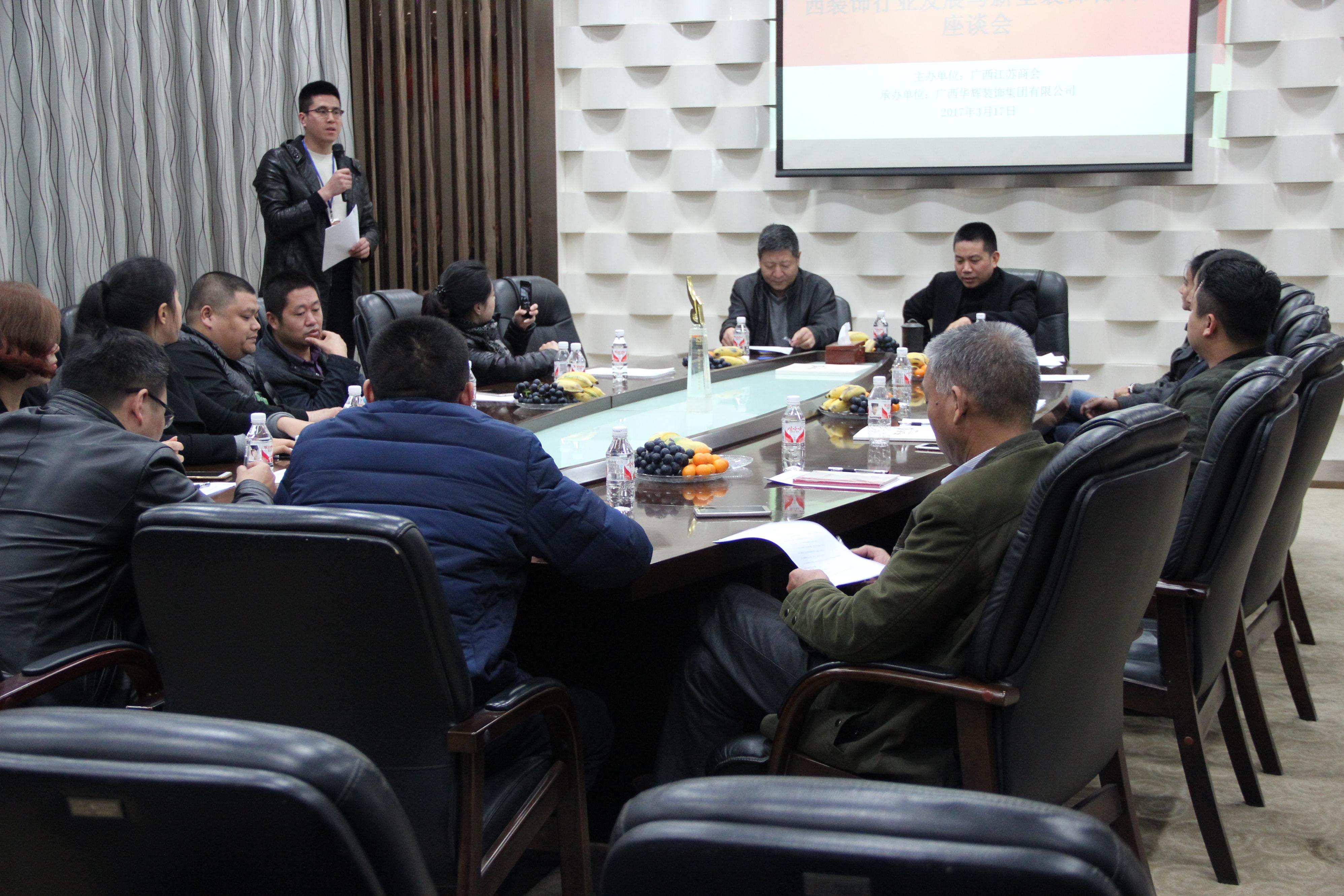 2017年3月17日下午,广西江苏商会主办的“广西装饰行业发展与新型装饰材料应用座谈会”在广西Ky开元集团装饰集团办公大楼隆重举行。座谈会由广西江苏商会秘书长朱建平主持,广西江苏商会值班会长杨景忠及二十多家商会成员等共三十多人参加了本次座谈会。大家在会上就装修装饰行业的相关问题畅所欲言,介绍了各自企业目前所掌握的资源和商机,并就目前商会的工作和管理提出中肯的建议,希望商会能够发挥更大作用,成为苏商在广西的家。
