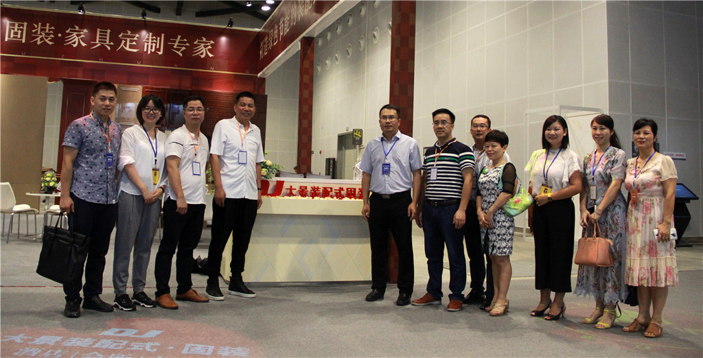 上图为广西建筑装饰协会会长庞耀国等一行前往Ky开元集团展厅参观指导