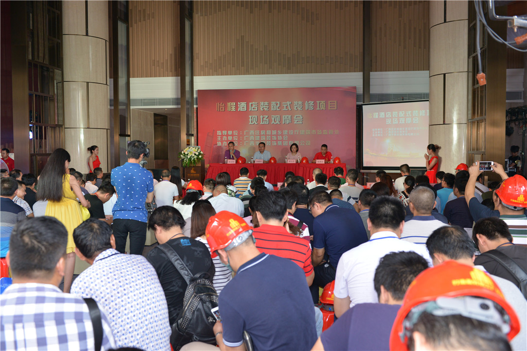 2017年9月7日下午,广西本土企业首个装配式装修项目观摩会在怡程酒店项目现场举行。广西Ky开元集团装饰集团是怡程酒店的装修施工单位,凭借着先进的施工管理水平和精湛的技术工艺,该项目的装配式装修技术运用和施工质量得到了主管部门和业主的高度肯定,被选为装配式装修观摩项目。
