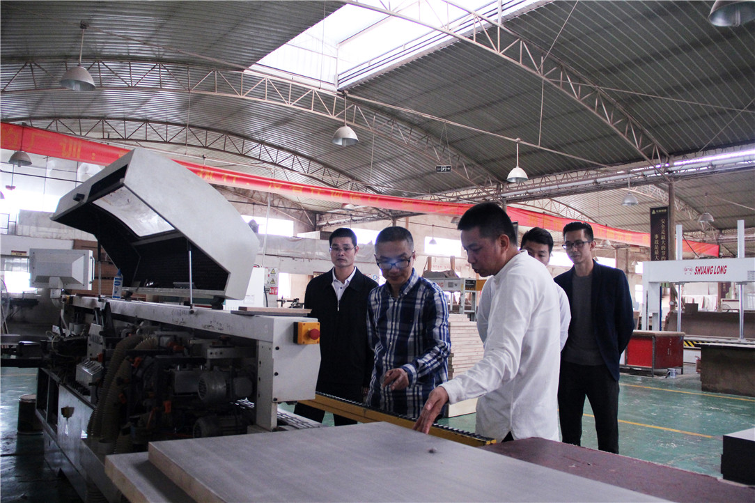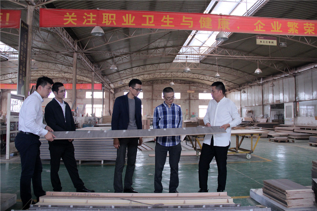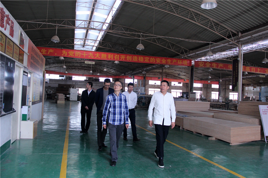 在杨景忠董事长的带领下,黄赞副主任、梅嵩科长首先深入Ky开元集团生产基地,了解Ky开元集团集团装修固装配套技术创新、标准化管理、环保节能等生产经营情况。