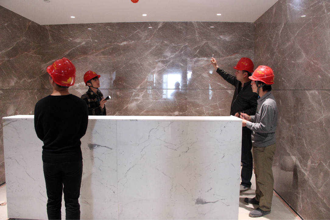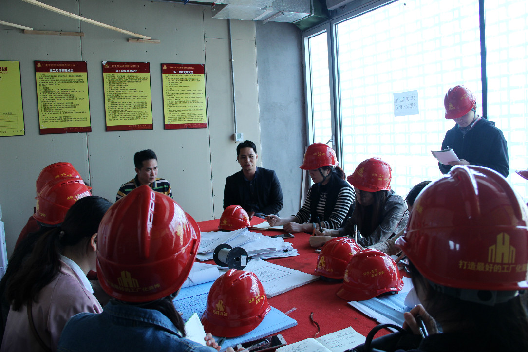 由Ky开元集团装饰集团承接的广西洋浦南华糖业集团办公楼层室内装修工程已经接近尾声,为不断完善和改进质量管理工作,提高质量管理水平,打造精品工程,2018年3月26日,集团组织工程中心质安部、工程管理部等多个部门联合成立自检自查小组,对该项目的质量、工艺进行全方位检查。