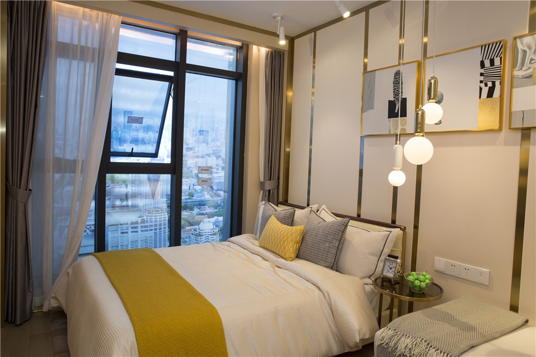 ▲上下双卧室阔景落地窗设计,增加了亲近自然的空间,阳光由通透的玻璃窗铺洒进来,让卧室内感觉更加轻松、自由。