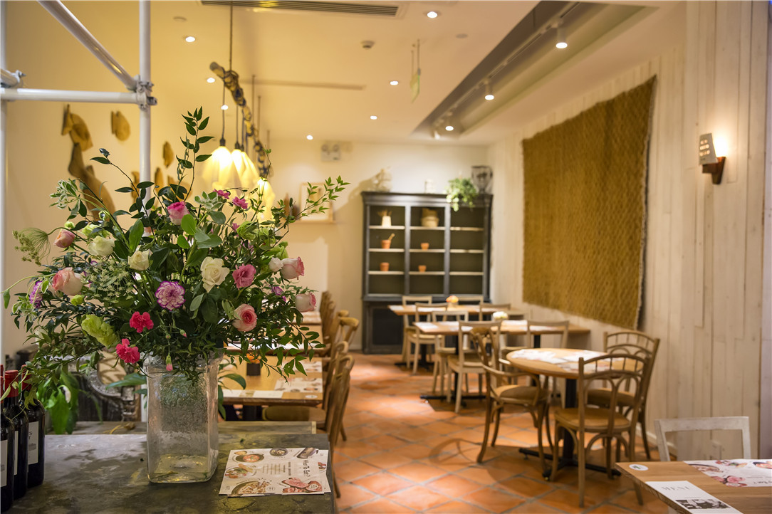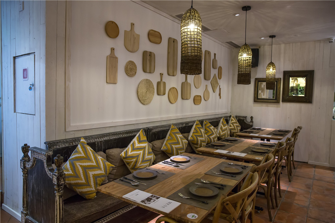 用餐区的装修保持了乌玛一贯简洁优雅的调性,白色墙面和木质桌椅,以及墙上别致的小摆件,在柔和的黄色灯光下,有种令人放松的亲切感。随意挑个心仪的位子坐下,点上一份西餐,没有外部世界的叨扰,这里足以让你填饱肚子,慰藉心灵,达到身心的双重统一。