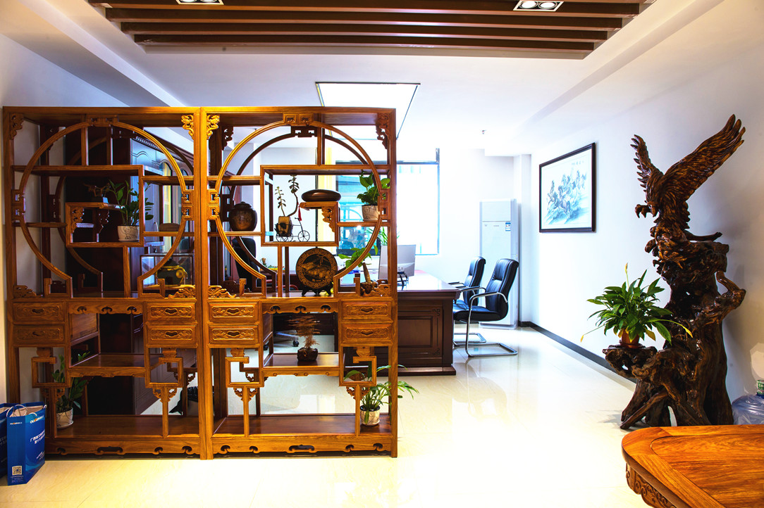 取水之蓝、家之皇为元素,以木饰面、陶瓷、大理石为载体,应用于墙面、地面、主背景墙。体现了瓯文集团厚德载物,开放包容,儒雅热情迎八方来客的气魄。