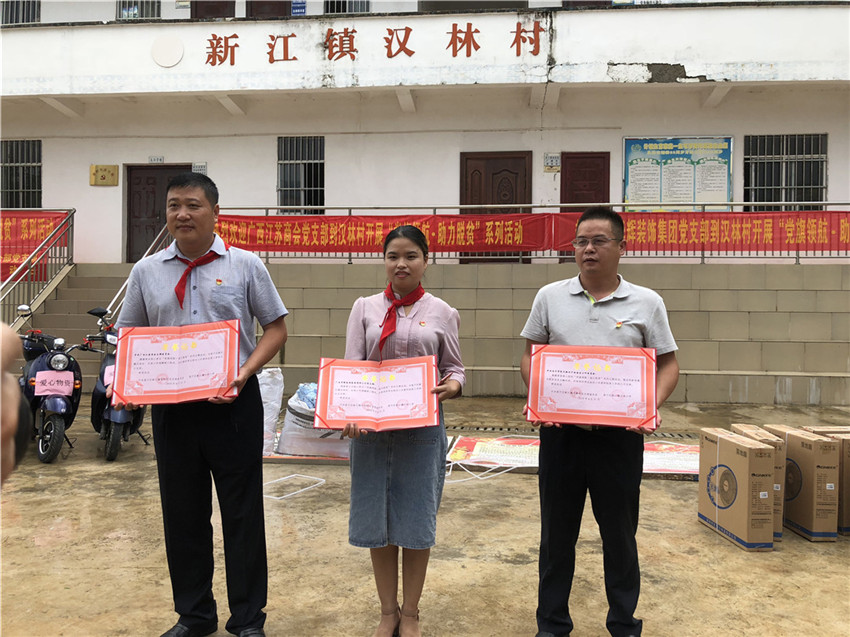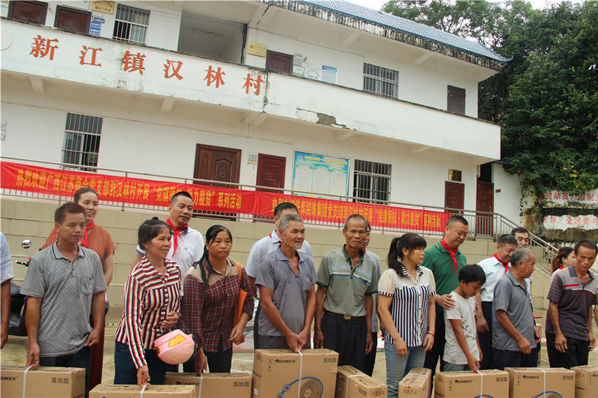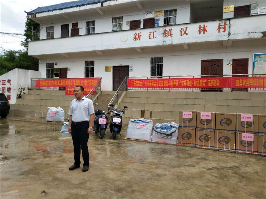 8月31日上午,南宁市邕宁区新江镇汉林村洋溢着一片暖意,“党旗领航·助力扶贫”的爱心捐赠活动正在这里举办。