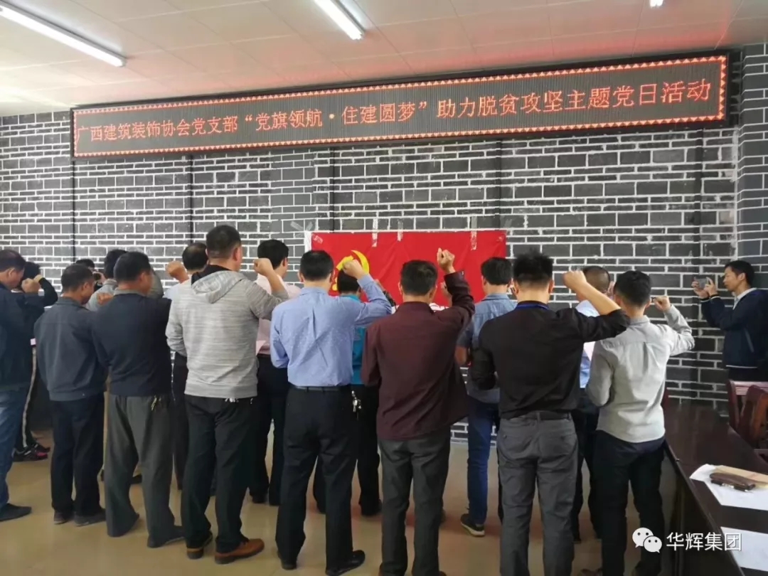 2018年11月2日,在广西住房和城乡建设厅机关党委专职副书记、行业党委常务副书记刘鸿铭,机关党委副调研员、行业党委副书记、行业纪委书记邹丽萍的带领下,广西建筑装饰协会党支部、会员爱心企业的代表一行共22人,赴上林县云里村,开展“党旗领航·住建圆梦”助力脱贫攻坚主题党日活动。