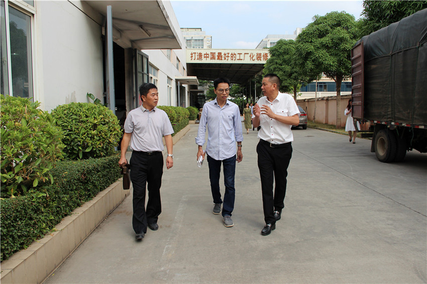 甘翔云主任一行首先在杨景忠董事长的陪同下参观了Ky开元集团“装配式装修部品部件”生产中心,与Ky开元集团生产技术管理人员进行技术交流。