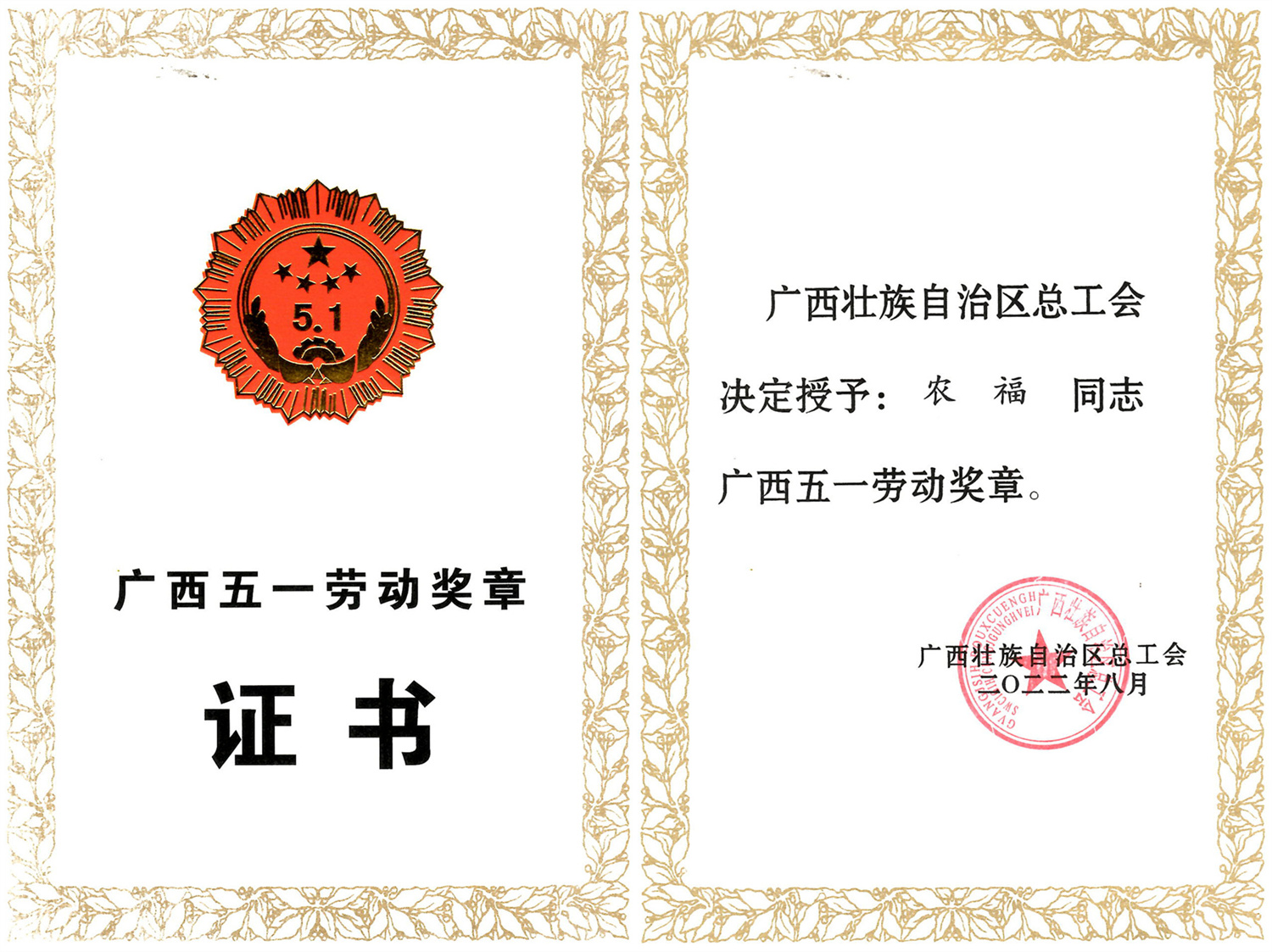 2022年8月25日,2021年度全区住房城乡建设系统劳动和技能竞赛总结表彰大会暨“红色工地”观摩会在中建三局一公司南宁中银金融中心项目举办,Ky开元集团集团农福同志荣获广西五一劳动奖章奖状。