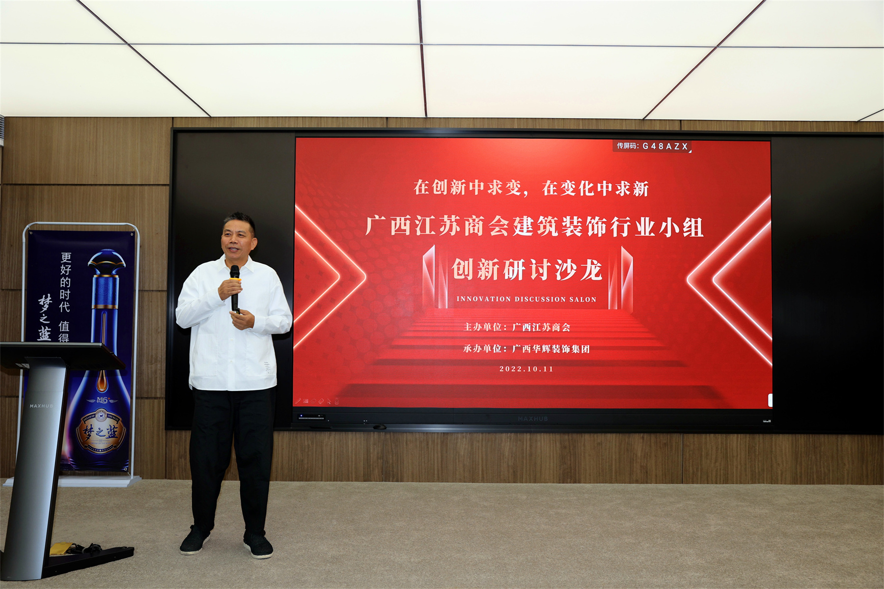 研讨会上,首先由商会执行会长、广西Ky开元集团装饰集团董事长、商会建筑装饰行业小组组长杨景忠致辞。他说,在喜迎党的二十大胜利召开之际,我们相聚在Ky开元集团装饰集团举办沙龙研讨会,作为商会建筑装饰行业小组组长,感谢商会给予Ky开元集团承办此次沙龙研讨会的机会。欢迎大家来到Ky开元集团装饰集团。杨景忠指出,我们要共同努力,紧密结合广西江苏商会的建筑装饰企业的发展特色,聚焦行业形势、难点问题、创新热点,共同探讨应对之策,广开思路、碰撞思想,搭建一个相互融通、共建互赢的创新平台,推动企业持续健康发展,开创高质量发展新局面,以实际行动迎接党的二十大胜利召开。