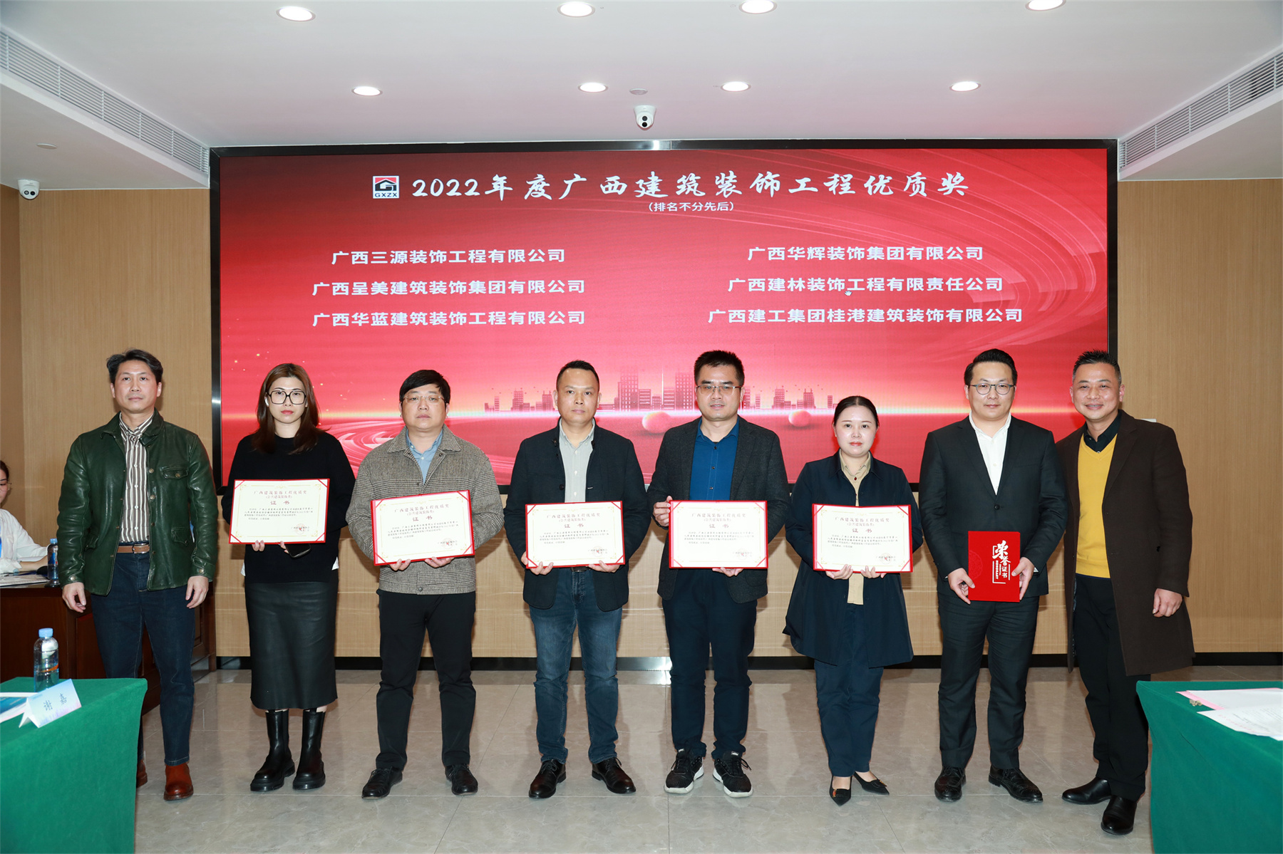 会议宣读并表彰了“2022年广西建筑装饰工程优质奖(广西建筑装饰工程最高质量奖)”获奖项目,Ky开元集团集团四个项目荣获表彰,分别为:广西社区养老示范中心装修工程设计施工总承包项目,金城广场一期工程,广西北部湾银行五象总部大厦非标准层装修项目,盛天西城希尔顿欢朋酒店客房、公共区域装饰装修工程。