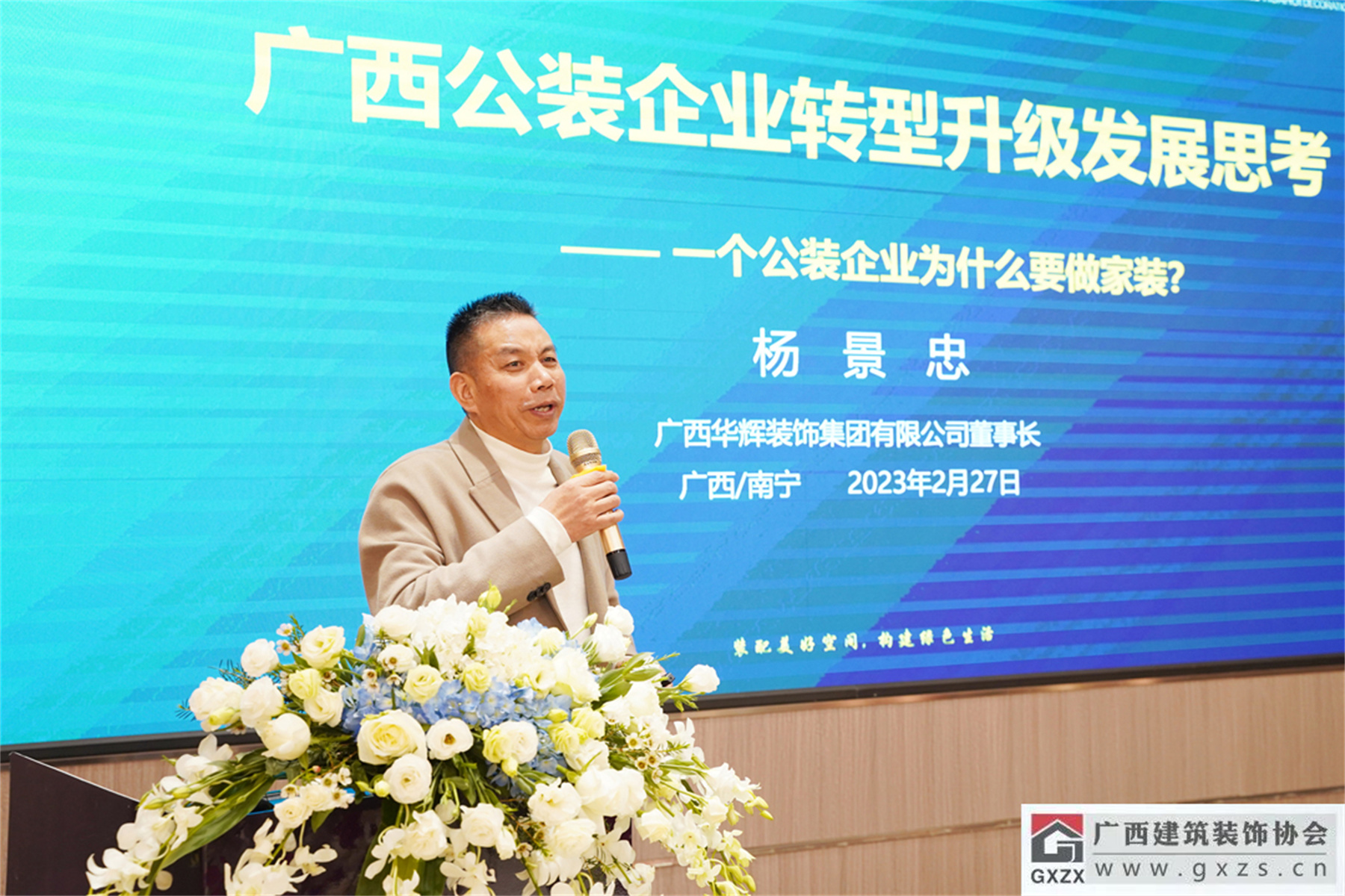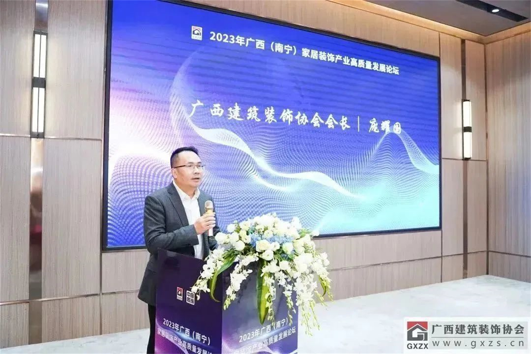 ▲广西建筑装饰协会会长庞耀国致辞