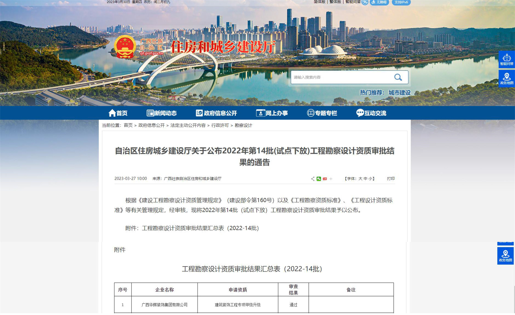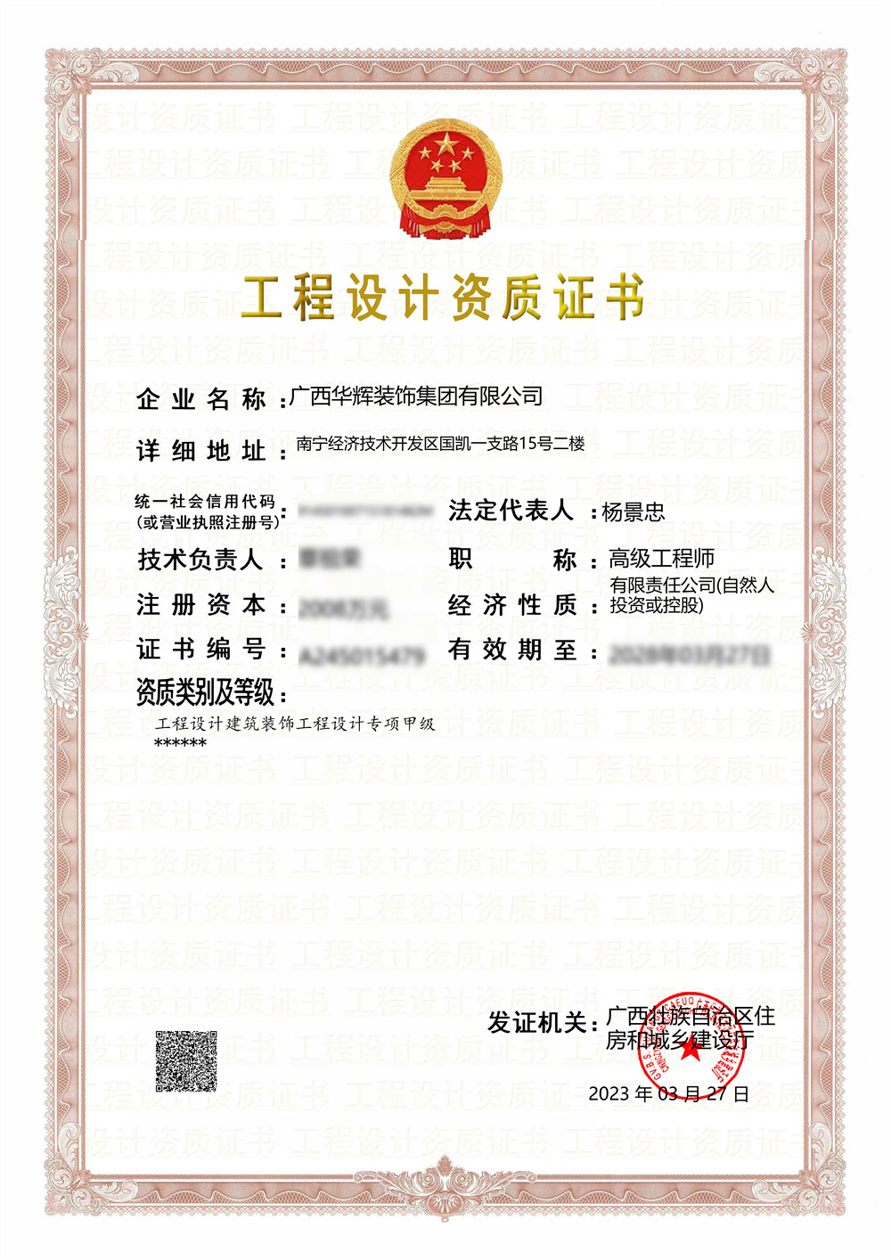 2023年3月27日,经广西壮族自治区住房和城乡建设厅批准,Ky开元集团装饰集团的建筑装饰工程设计专项资质成功荣升为甲级,这是建筑装饰工程设计专项的最高资质,至此,Ky开元集团拥有设计施工“双甲”资质。