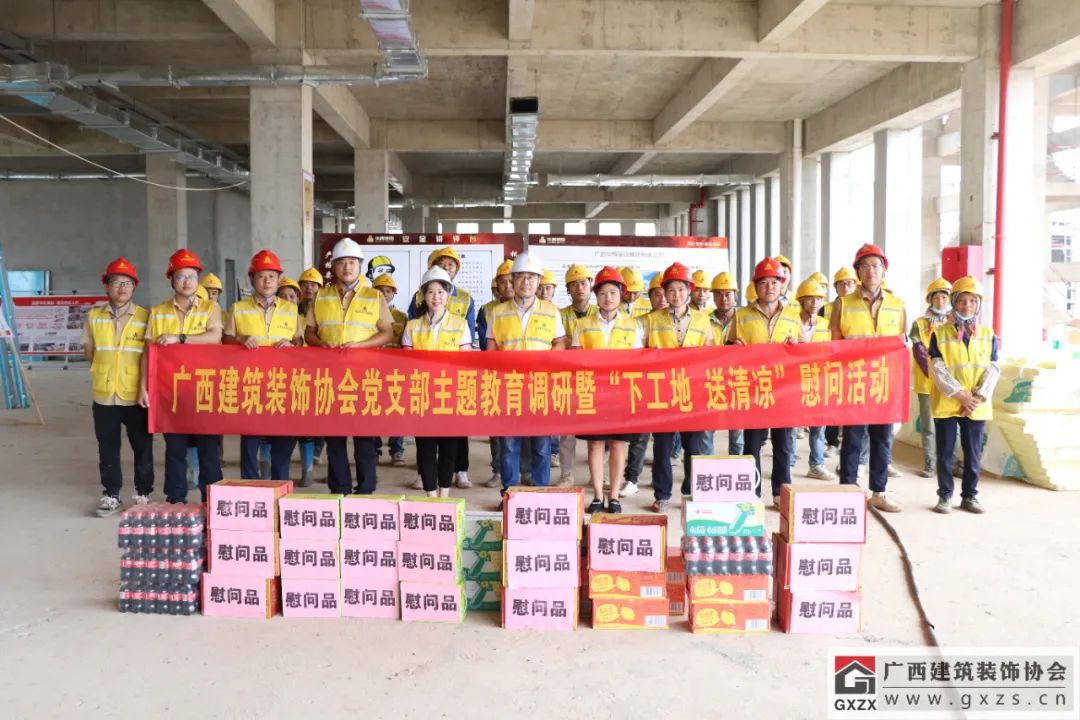 2023年6月8日,广西建筑装饰协会党支部书记黄榆,组织支部党员、入党积极分子、秘书处工作人员一起前往Ky开元集团在建项目工地,与Ky开元集团党支部共同开展“下工地 送清凉”慰问活动,向Ky开元集团一线劳动者送去“清凉慰问品”。