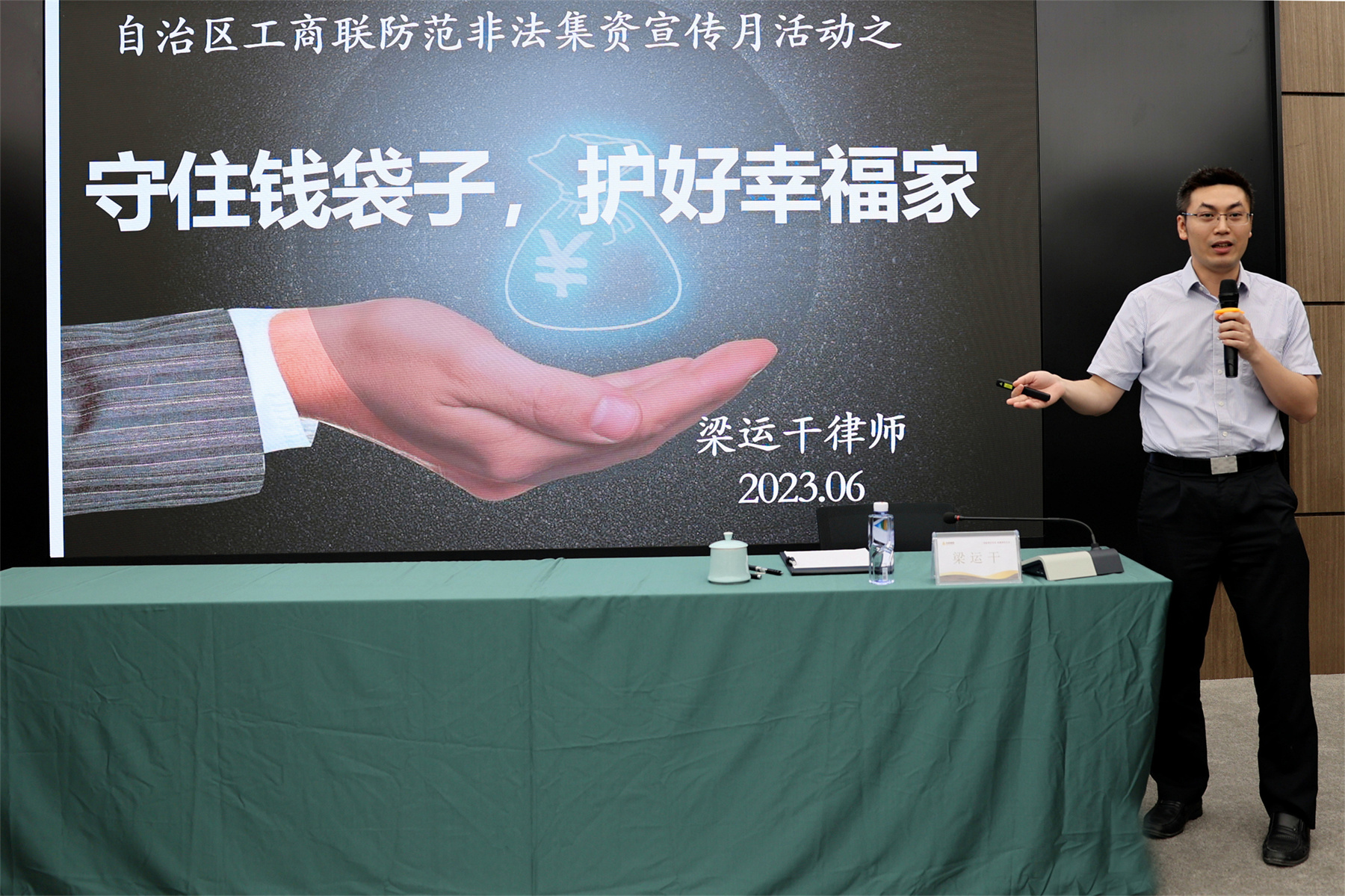 活动围绕“美好生活·民法典相伴”“优化法治化营商环境”“守住钱袋子·护好幸福家”等主题开展民法典、广西优化营商环境条例和防范非法集资普法宣传,进一步提升工商联所属商会依法办事能力和法律服务水平,提高民营企业诚信廉洁守法合规经营和法律风险防范意识,一体推进法治民企、诚信民企和清廉民企建设。